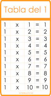 Escribe la tabla de multiplicar del 1 en el cuaderno